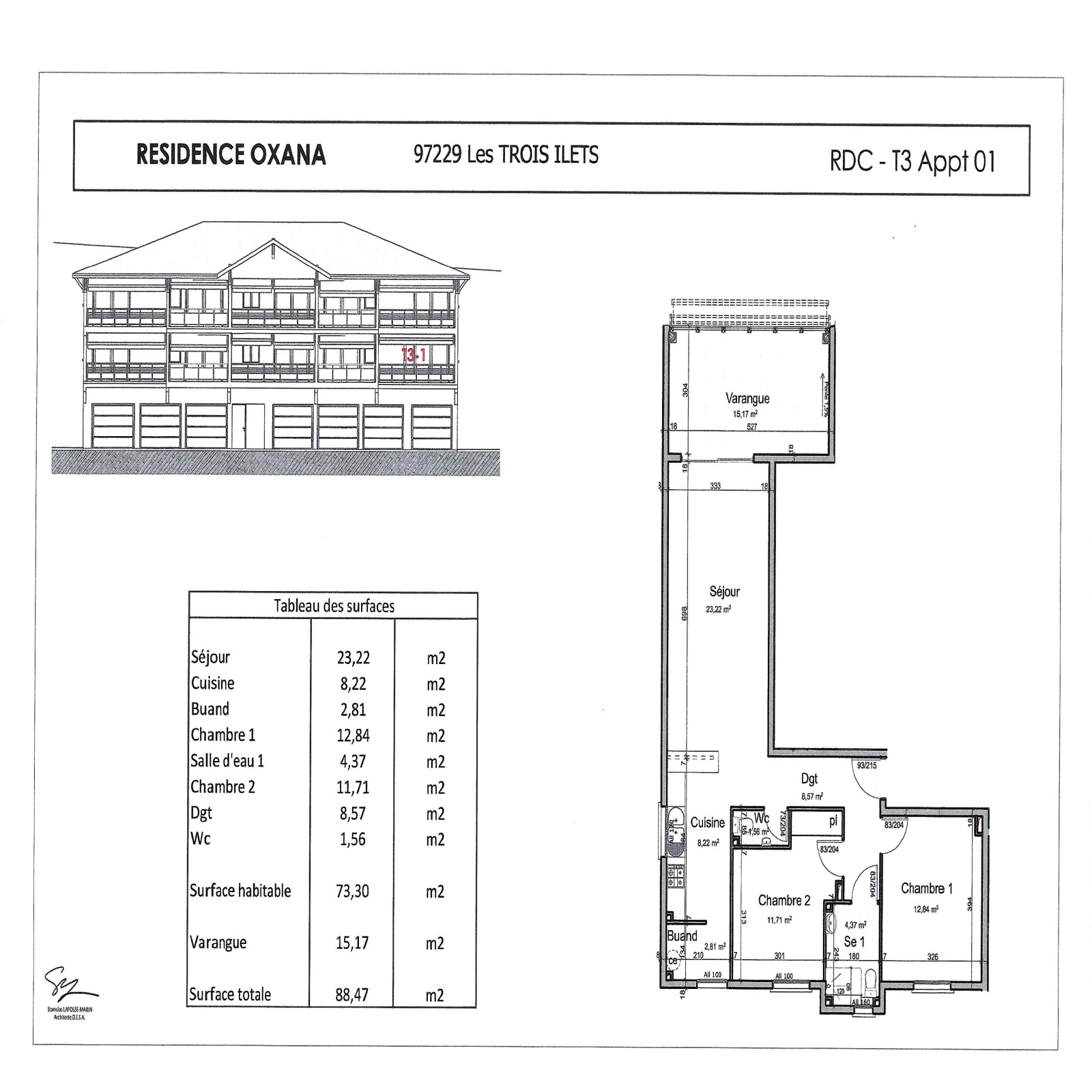 Appartement T3 avec belles prestations, il se compose d'une cuisine américaine aménagée ouverte sur spacieux séjour, 2 chambres climatisées et aménagées de placards, salle d'eau avec douche italienne, wc indépendant, buanderie.